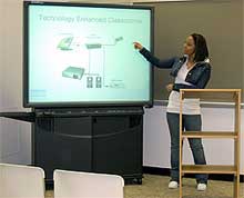 Located in RT 304 on the third floor of the Library inside RT 301, the Presentation Practice Room is equipped with a Smart Board and PC, remote controllable camera, and a USB video recording system enabling students to capture and evaluate their presentation rehearsals, and other course-related projects.