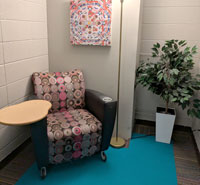 Currently enrolled CSU students may borrow a key from the 1st floor Library Help Desk. The space is available on a first-come-first-served basis and may be used by up to 3 students at a time. Food and drink are not permitted in the Quiet Reflection Room, and personal belongings may not be kept in the room while not in use. Students are asked to be respectful of others working in the adjacent quiet study area, and to secure the room before returning the key.