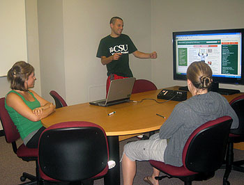 RT 402 may be reserved for 2 hours by 2 to 6 currently-enrolled CSU students using technology resources in the room to work on projects for CSU courses. RT 402 is not available for social gatherings or student organization meetings, and groups may only make one reservation at a time.